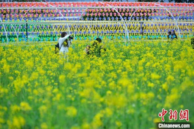 2月18日,游客在福州花海公园游览、赏花。福州花海公园油菜花迎来最佳观赏期,吸引不少市民、游客前去游览。中新社记者 吕明 摄